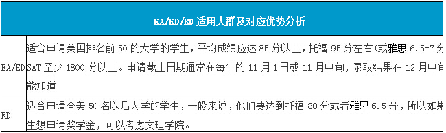 申请EA的学生,并不要求学生做出报到入学的承诺。学生一般要求在每年5月1日前答复是否接受此学校的录取结果。