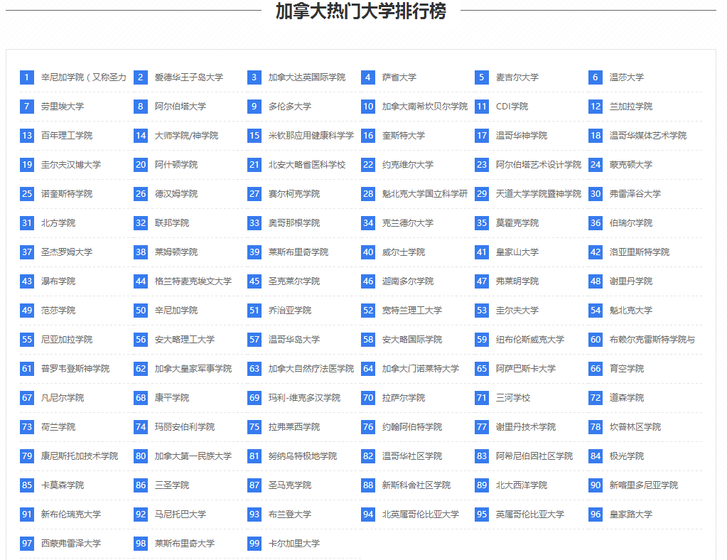 请跟随美嘉教育小编一起来看看新的加拿大近热门大学排行榜吧,看看有没有你们中意的院校!