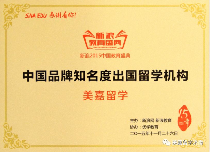 据悉,2017年我国各类出国留学人员总数达60.84万人,各类留学回国人数达48.09万。从改革开放到去年底,我国累计超过519万人出国留学,超过313万人选择在完成学业后回国发展,约占整个留学群体的83%。山东是教育大省,出国留学人数也位居前列。美嘉创始人陈华老师从业近20年,加籍知名留学导师;2001年美国纽约大学访问学者;2005年英国爱丁堡大学访问学者;北广传媒《考试在线》节目特约讲师;人民网特约供稿人;搜狐、新浪、腾讯出国频道特约顾问,BTV留学生节目年度特约规划师,团队始终以坚持高质量、专业、快捷的服务为宗旨,本着高素质、高效率、高诚信、高标准的原则,针对每一位学生制定个性化留学方案,齐心合力打造出国际教育高服务品质!美嘉教育来到山东、来到济南,我们期待为更多的学子提供高质量、高专业的服务!