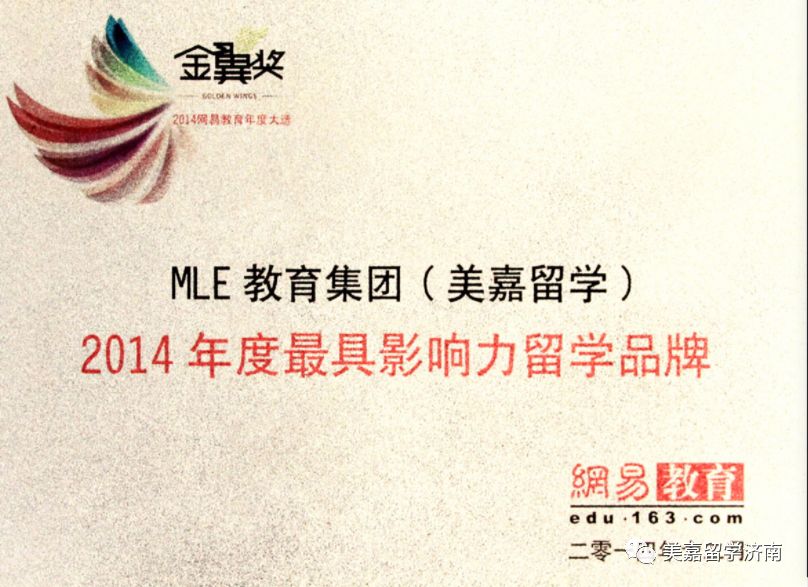 2014年12月获网易教育金翼奖影响力出国留学品牌称号;