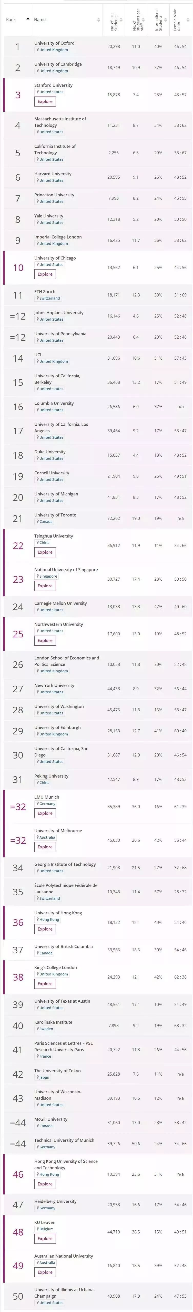 令人惊喜的是清华大学排名第22,首次超越北京大学成为中国大陆名,取代新加坡国立大学成为亚洲排名的高校。
