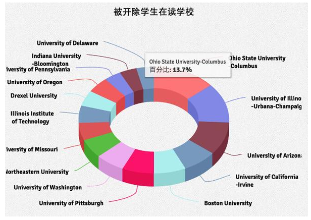 《2015版留美中国学生现状白皮书》数据显示,被开除的留学群体有以下几方面的共通点:80.55%因学术表现差或学术不诚实而被开除;69.43%来美国不到2年;过半数(51.28%)的学生GPA低于2.0;88.7%的被开除学生为18-25岁;79.04%本科或硕士学位在读。估算被明确开除的中国留美学生,占留学生总数的3%左右,去年被开除的中国学生总数约有8000 人。