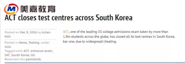 近新闻真是一波未平一波又起,亚洲考场作弊近有愈演愈烈之势,所以,据国外权威媒体PIE NEWS报道,ACT放大招了:关停韩国ACT考场。这下让你们无处考试,还敢作弊么?