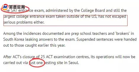 ACT南韩现在关停了25个考场,只剩首尔一个了。