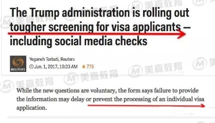 近日,一则路透社报道引起大家的关注,特朗普又刮旋风了,美国政府近日签署重要法规:向全各国美国签证申请人新增一份调查问卷,要求申请者提供过去5年的社交媒体账号,以及过去15年的个人经历记录。美嘉教育为大家详细解答一下。